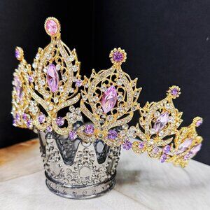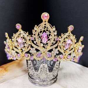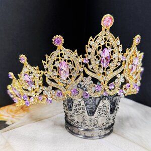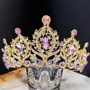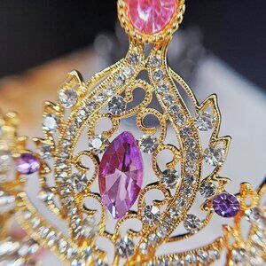 Color: Pink, purple Crystal, rhinestones and gold-plated crown.