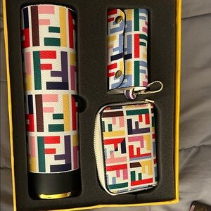 FF set comes with key holder, wallet with 8 inserts, and coffee/tea thermo. Comes new in box with everything you see. All products come from smoke free home.