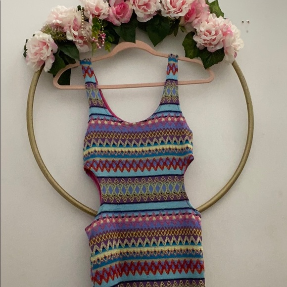 Very Fun and Gorgeous sleeve-less Dress Multicolor -Open Sides Soft Pink Mesh Lining Size: Small- Stretchy