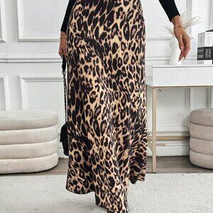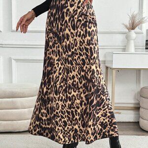 Multicolor Elegant Women's Casual High-Waisted Leopard Print Long Skirt