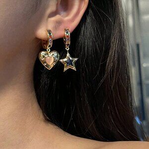 Multicolor Elegant Womens Cat Eye Stone Asymmetrical Star Shaped Pendant Earring