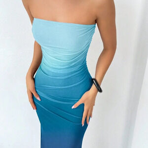 Multicolor Elegant Women's Firerie Gradient Mesh Print Bodycon Dress