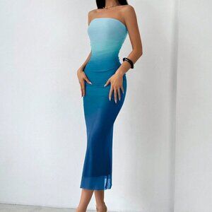 Multicolor Elegant Women's Firerie Gradient Mesh Print Bodycon Dress