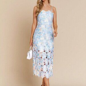 Multicolor Elegant Women's Floral Watercolor Lace Hollow Out Slip Dress