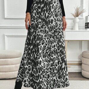 Multicolor Elegant Women's High Waist Leopard Print Maxi Length Skirt