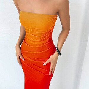 Multicolor Elegant Women's Ombre Mesh Bandeau Bodycon Dress