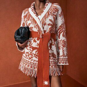 Multicolor Elegant Womens V-Neck Belted Sweater Cardigan