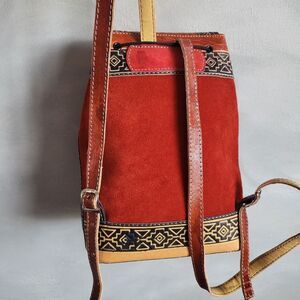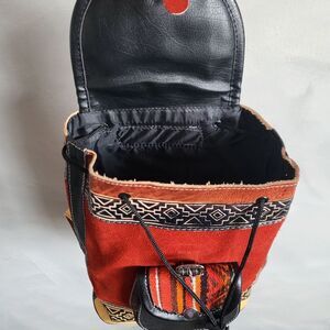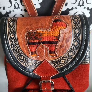 Multicolor Faux Leather Suede Boho Hippie Southwestern Small Backpack llama
