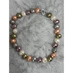 Multicolor Faux Pearl Beaded Necklace with Crystal Heart Clasp, 21"