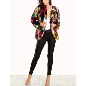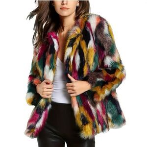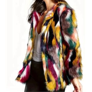 Multicolor faux fur coat. Acrylic, polyester; polyester lining