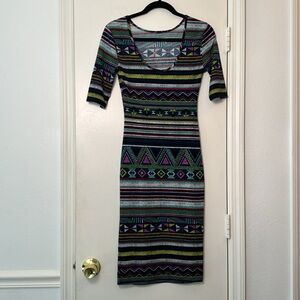 Multicolor Form Fitting Y2K Xhilaration Midi Dress Size XS
