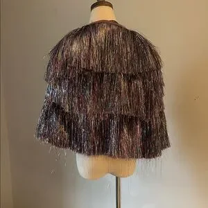 Diffuse (bought on Nasty Gal) fringe jacket. So sparkly π marked as a size 8- would say it fits like a small.