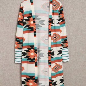 This western print cardigan will shape your individual character style. The geometric and stripe patterns make it more unique and attractive. Great to pair with basic shirts, tank tops, jeans, shorts, and casual pants. It can be worn as a sweater coat for spring, autumn, and winter