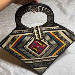 Stylish women bag featuring a vibrant geometric pattern. Perfect for adding a pop of color to any outfit.