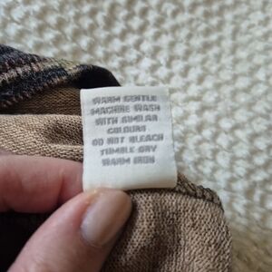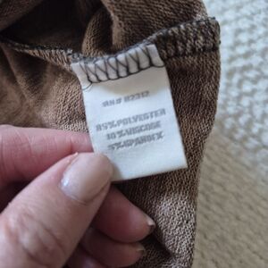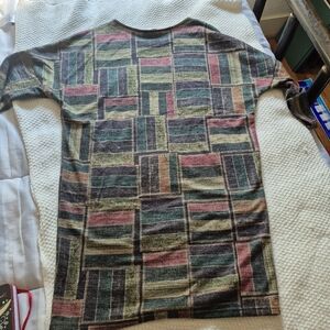 Stylish dress with a geometric pattern in muted fall like multicolor tones. Perfect for casual outings. Looks cute with leggings/ boots. Pre-owned, excellent condition. Worn only a couple times. Measurements: length 32.5. Shoulder and pit measurements can't be done due to the style. That area is oversized, see pic.
