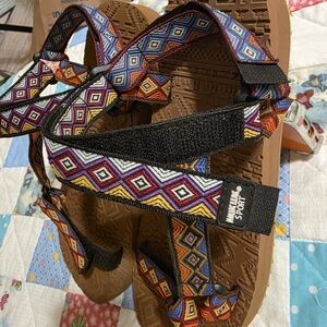 Vibrant strap with geometric patterns. Features black, yellow, pink, and blue colors. Perfect for adding a pop of color.