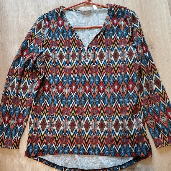 Multicolor Geometric Rafaella Pattern Women's Top