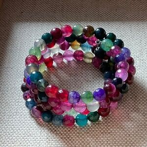 Multicolor Glass Bead Memory Coil Bracelet