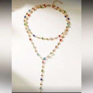 Elegant multicolor necklace with a gold chain, perfect for adding a vibrant touch to any outfit.