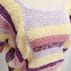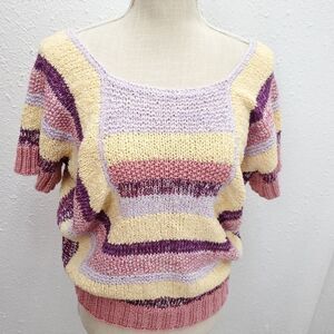 Multicolor Hand Knit Color Block Striped Short Sleeve Top