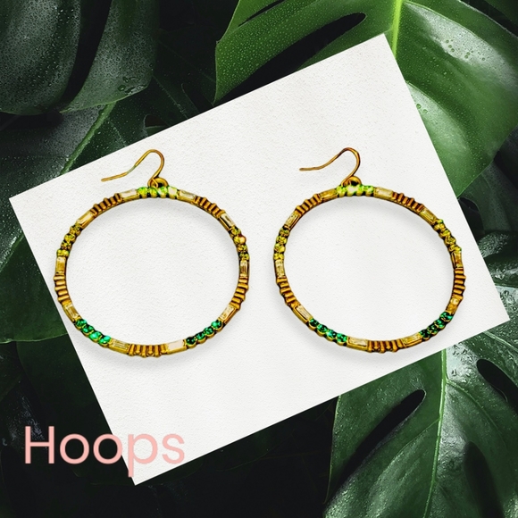 *Costume Jewelry* Bronze Colored Hoops with Clear, Light Green, and Dark Green Crystals