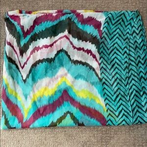 Teal, pink, and yellow infinity scarf. Great accessory to brighten up an outfit. In great condition.