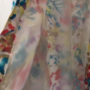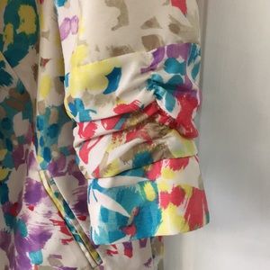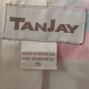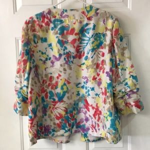 Vibrant TanJay Multicolored Floral Open Front Jacket with pockets. Measures 25” from neck to hip in back. Looks great with khaki pants! Excellent previously loved condition!