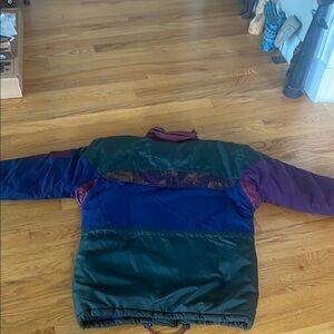 Vibrant multicolor kids jacket perfect for outdoor adventures. Features a mix of purple, blue, and green shades for a stylish look.