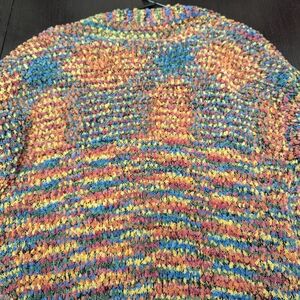 Great oversized, cozy eclectic Grandmacore style. Vibrant multicolor knit cardigan. Perfect for adding a pop of color to any outfit.