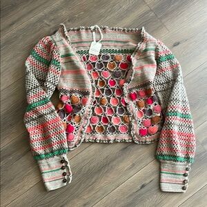 Stay cozy and stylish with this multicolor knit cardigan sweater. Featuring a blend of vibrant colors, this sweater is perfect for adding a pop of color to your wardrobe.