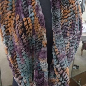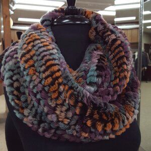 Multicolor Knitted Rex Rabbit Fur Infinity Scarf