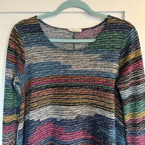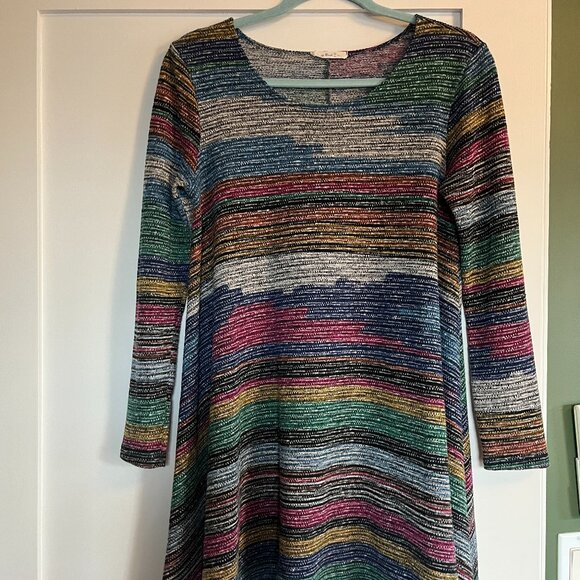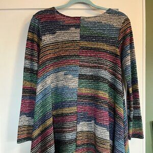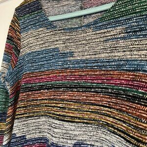 Cute and cozy shift dress in multicolor knit sweater material. Great for fall and winter!
