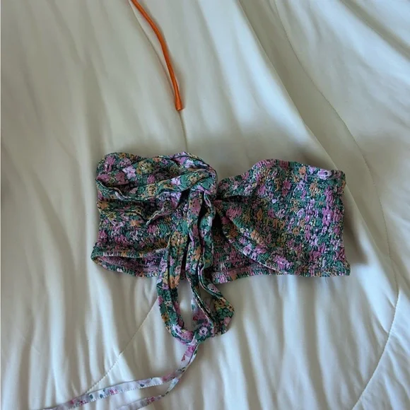 Garage multicolor floral smock top featuring ruffle details. Perfect for a spring and summer only slightly worn!