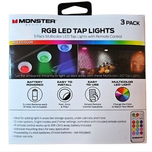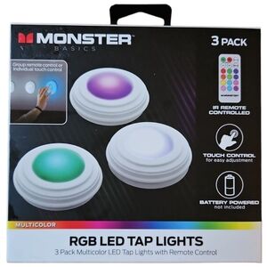 Multicolor LED Tap Lights with Remote Control, Set Of 3, New In Box