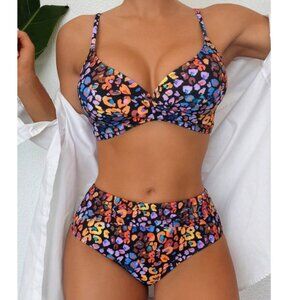 Multicolor Leopard Print Two-Piece Set Beach Summer Vacation Size Sm Barbiecore