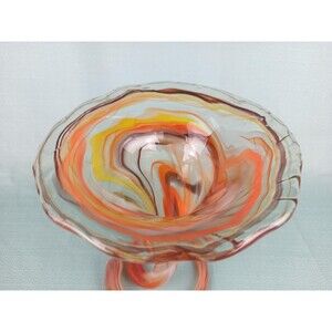 Multicolor MCM Swirl Vase Murano Style Art Glass Orange White Pink Red Glass Art