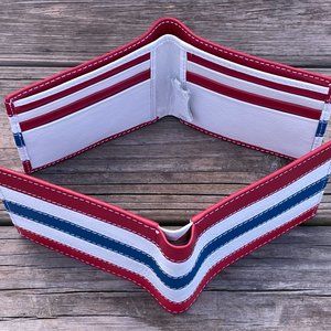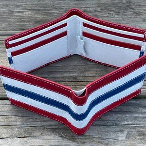 Multicolor Men Wallet US Flag Bifold Cardholder Handmade Genuine Leather Men Pur