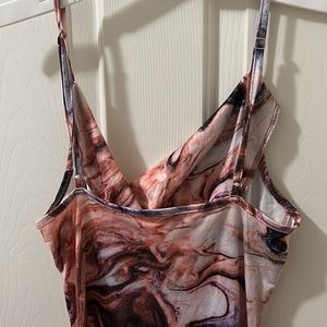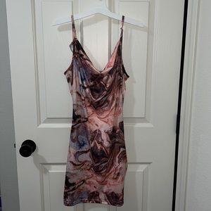 Worn only once Draped Neck Printed Spaghetti Strap Mini Bodycon Cami Dress Adjustable traps