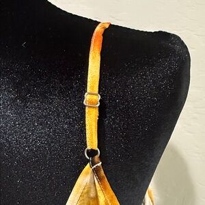 This vibrant mini dress features a stunning multicolor design, perfect for any occasion. The dress showcases a blend of orange, green, and brown hues, creating a unique and eye-catching look.