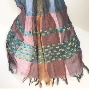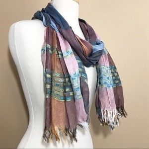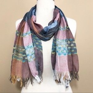 Multicolor Mixed Plaid Lightweight Eyelash Fringe Edge Scarf