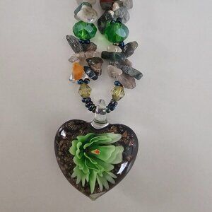 - Black, green and turquoise with heart shaped pendants [1 of each color]