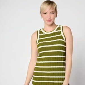 Fashion by Samuel Dong. Wide leg jumper, sleeveless v-neck, hidden back zipper, side pockets.