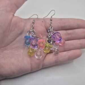 Handmade, multicolor pacifier earrings.