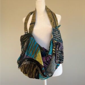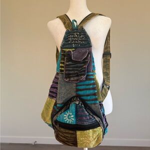 Explore in style with this vibrant multicolor patchwork backpack. Perfect for adding a pop of color to any outfit.