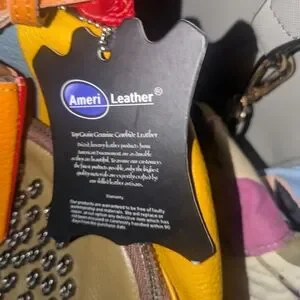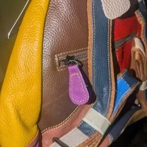 AmeriLeather Joreah multi-color patchwork leather backpack featuring studded multicolor patchwork. this backpack is very unique and it has such a beautiful smell to it as well as a great weight. I know that sounds kind of odd coming from a backpack, but you can just tell the leather is very good and healthy and that the backpack is made out of great materials. this is definitely a conversation starter and a Great accessory for any outfit to make a pop.