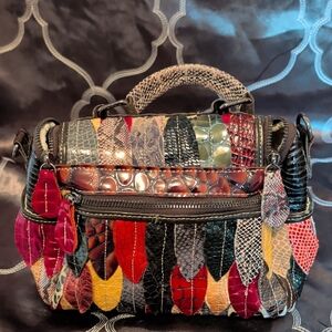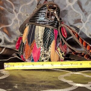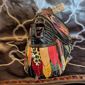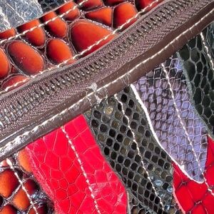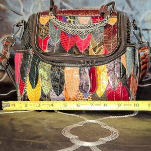 Vibrant and stylish, this multicolor patchwork handbag is perfect for adding a pop of color to any outfit. Crafted with a unique design, it features a variety of colors including red, yellow, and green. Ideal for fashion-forward individuals.