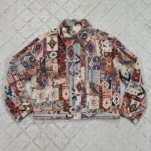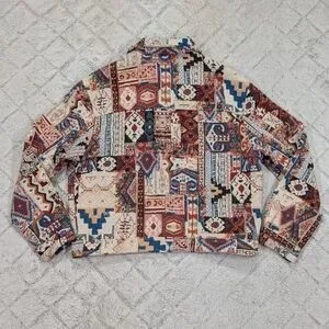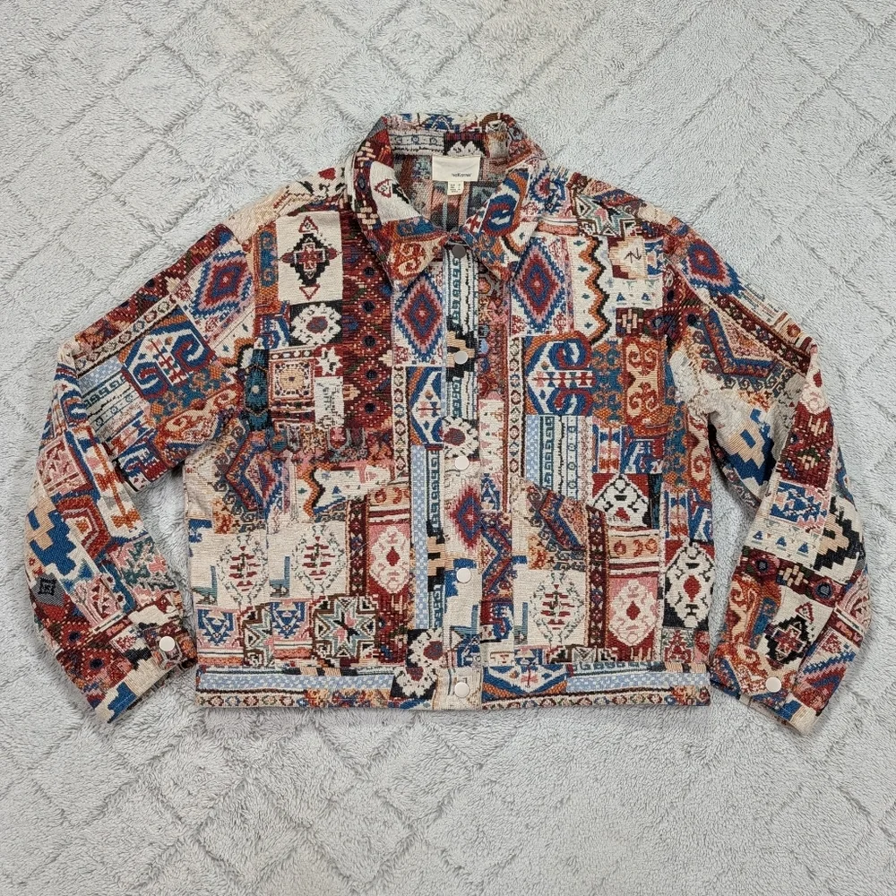 Explore vibrant style with this multicolor patchwork jacket. Perfect for adding a unique touch to any outfit.