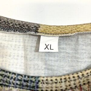 Multicolor Patchwork Print Long Sleeve Top, Lightweight Knit, Women’s XL, NWOT