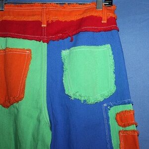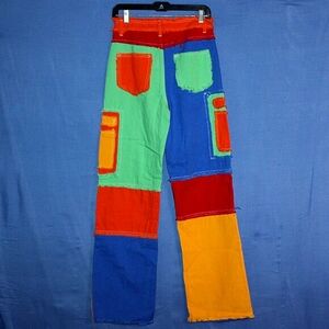 Make a bold and vibrant statement with these fun SHEIN patchwork straight leg pants! Featuring a playful mix of red, blue, green, and orange panels with raw edge details and utility pockets, these 100% cotton pants are perfect for expressing a funky, bohemian, or streetwear style.