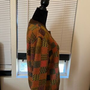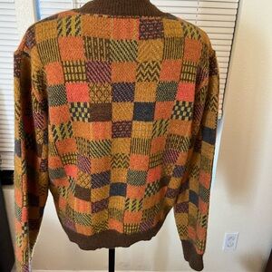 Stay warm and stylish with this multicolor patchwork sweater. Perfect for adding a pop of color to your wardrobe.